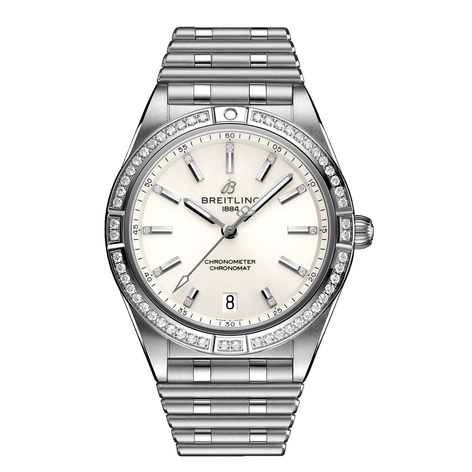 CASE: Acero inoxidable de 36 mm Ø. Con diamantes engastados en el bisel